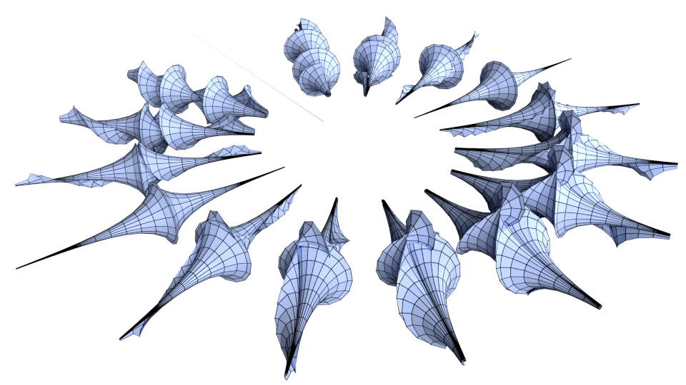 - Alexander I. Bobenko, Tim Hoffmann, and Nina Smeenk Constant mean curvature surfaces from ring patterns: Geometry from combinatorics, 2024. [ bib | arXiv ]