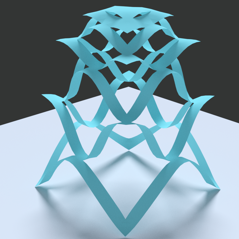 Discrete orthogonal geodesic nets (DOG nets for short) are a discretization of developable surfaces, that utilizes the fact that a surface is developpable if and only if it admits an orthogonal net of geodesics. The advantage of such a parametrization by orthogonal geodesics — compared to one by rulings for example — is, that it is invariant under isometric deformations. One can read about them here and here.